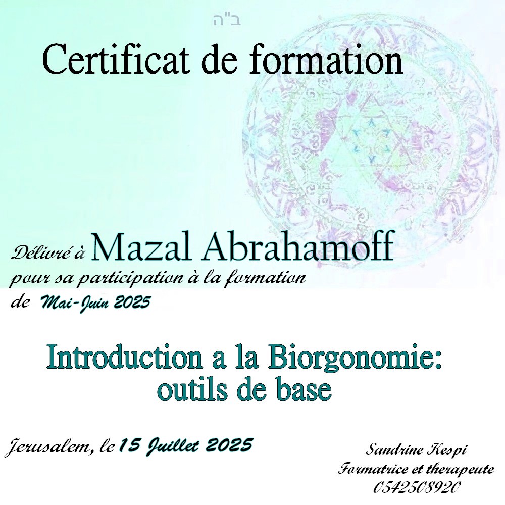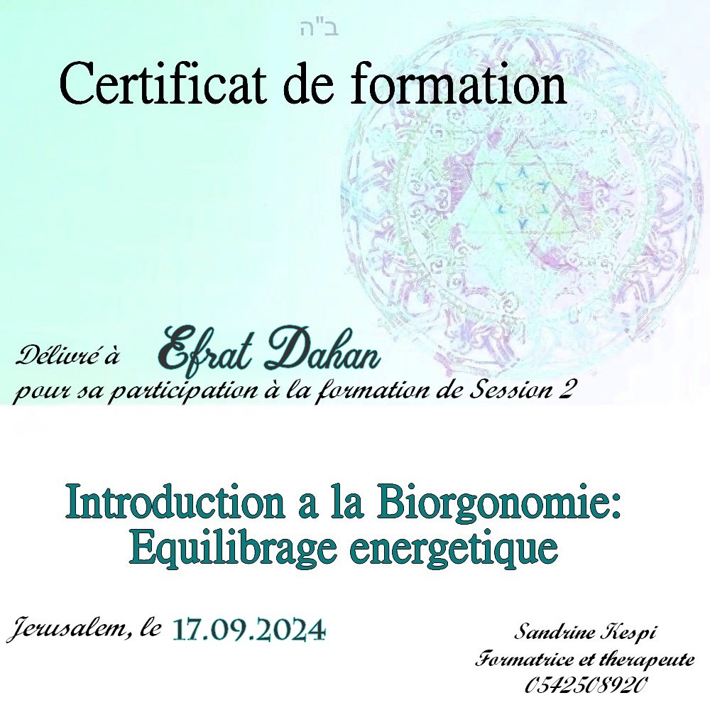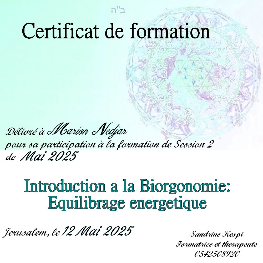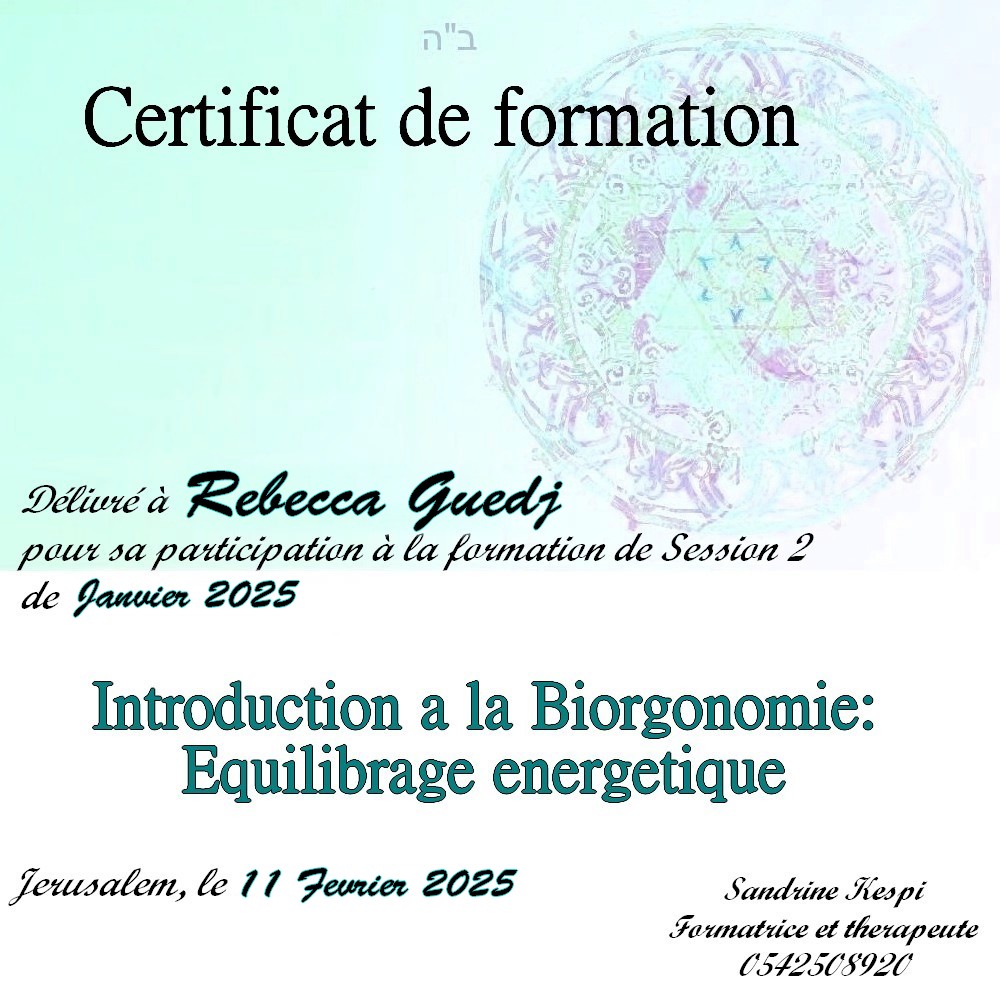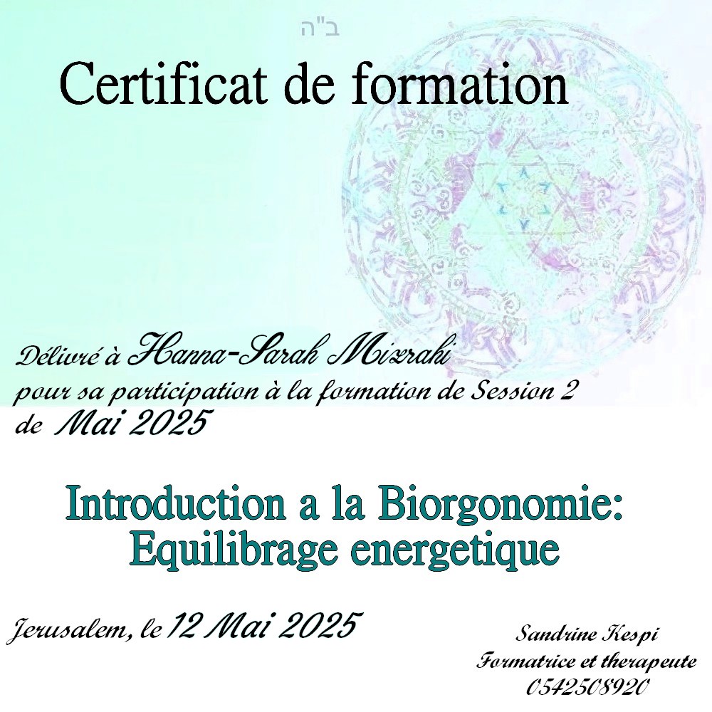 Une quatrieme session est en cours d’ecriture sur l ‘utilisation du secret des lettres hebraiques et les outils de la medecine kabbalistique dans le cadre du soin energetique.