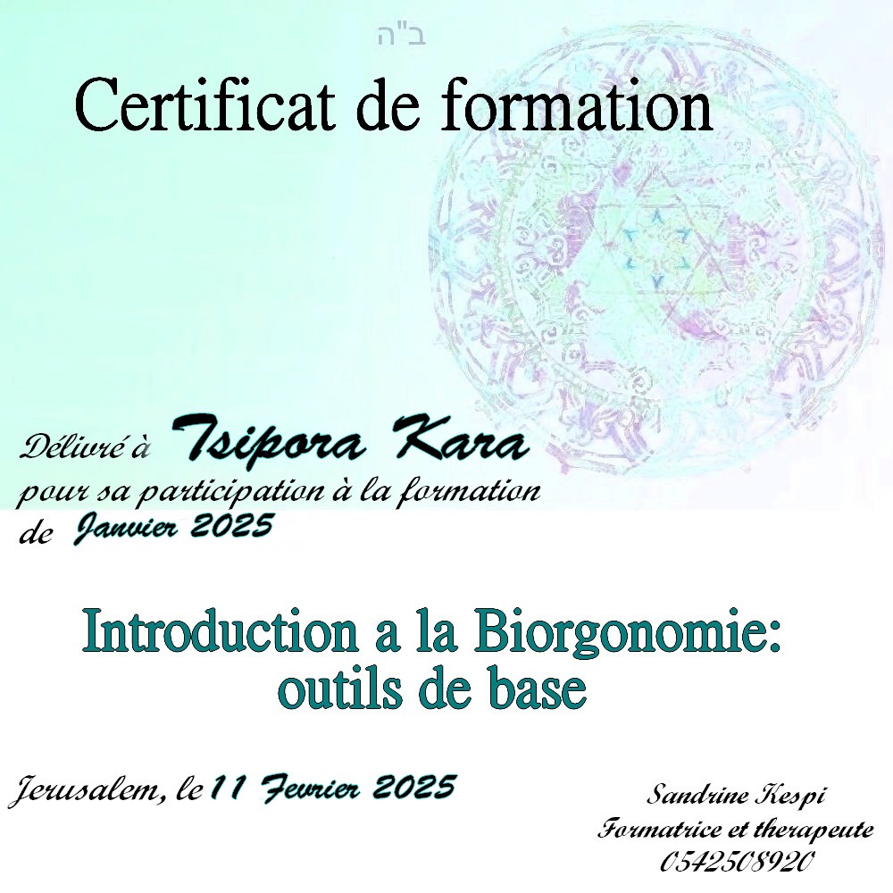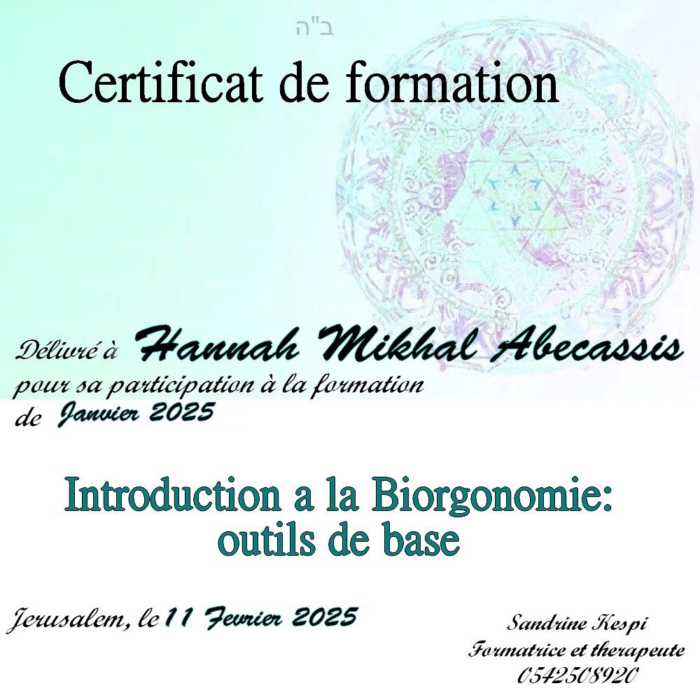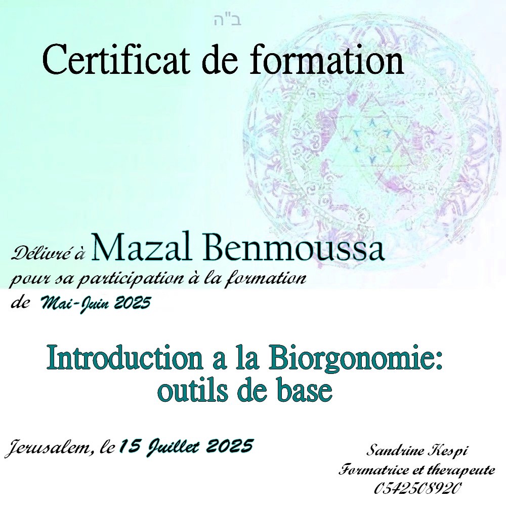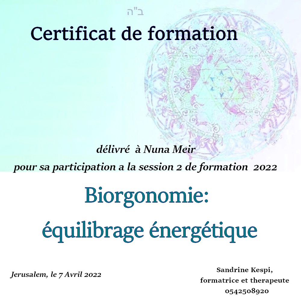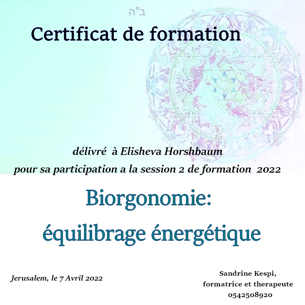 Une quatrieme session est en cours d’ecriture sur l ‘utilisation du secret des lettres hebraiques et les outils de la medecine kabbalistique dans le cadre du soin energetique.